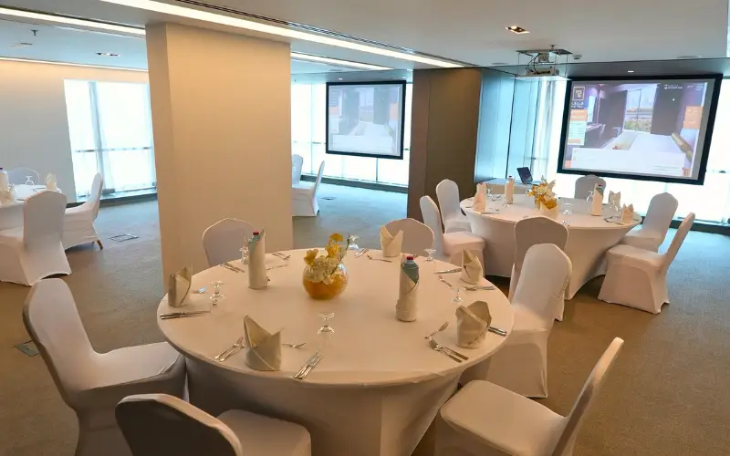 At 72 Hotel, our meeting rooms cater to all corporate needs, from private meetings to large conferences. Fully customizable and equipped with the latest technology, they combine elegant décor with advanced presentation tools to ensure your event is successful. Impress your clients with a luxurious and professional setting.