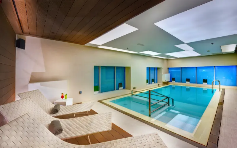Relax beneath the shade with our spectacular Ellipse Indoor Pool. Take a break from reality with a dip in the temperature-controlled pool or rest on the pool bed. Elevate your experience with exquisite bakeries and freshly brewed coffees from our Quadrant Cafe. Indulge in absolute relaxation and comfort.